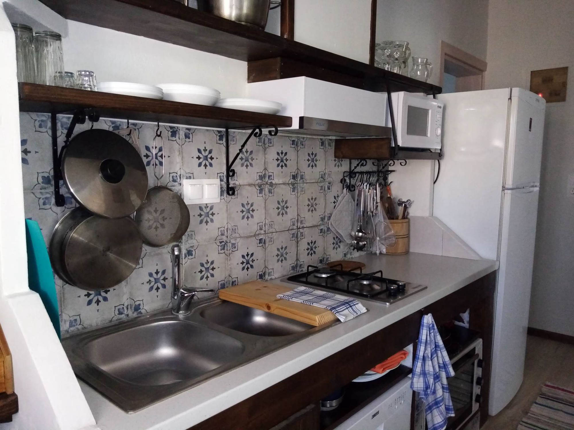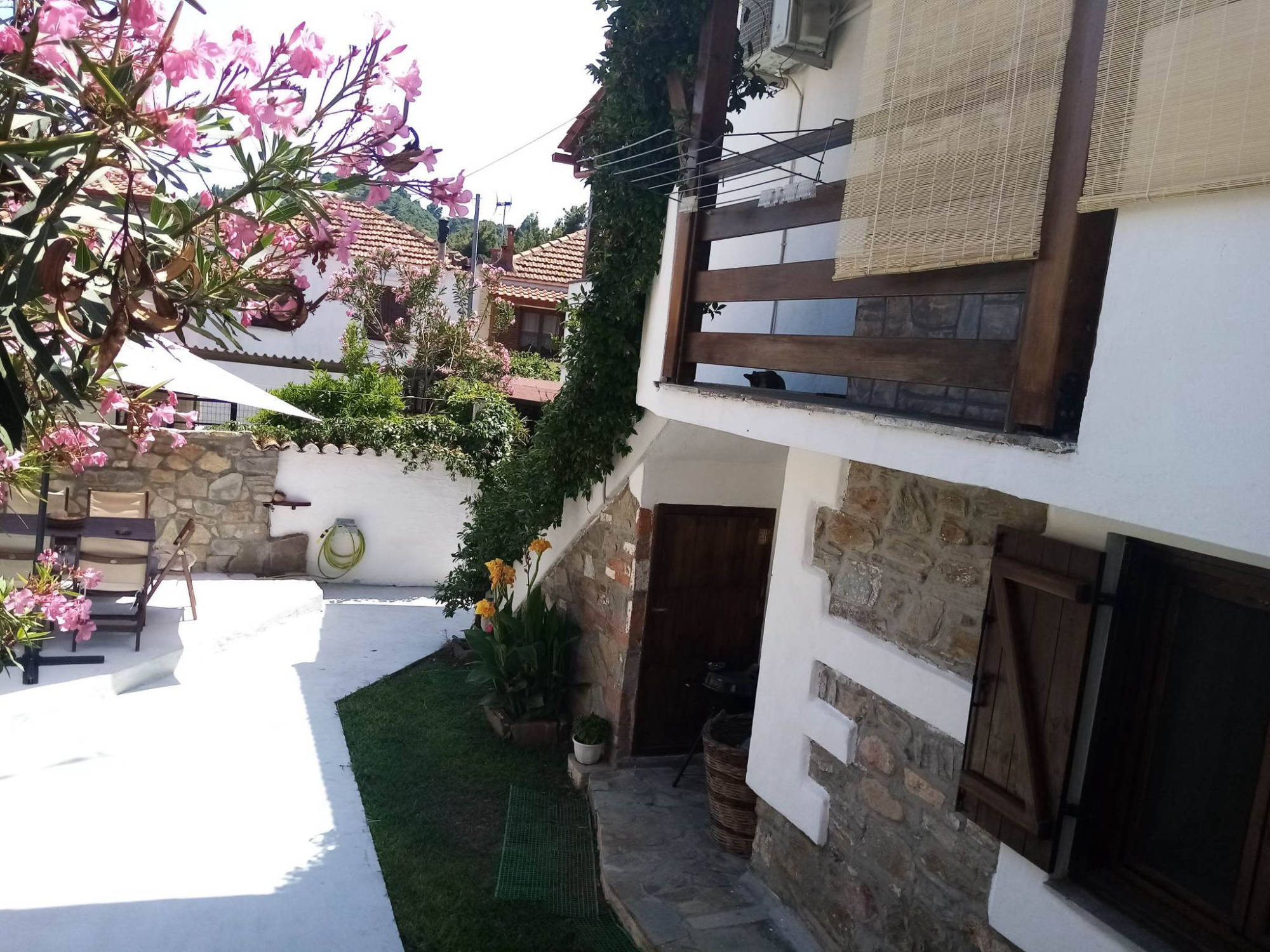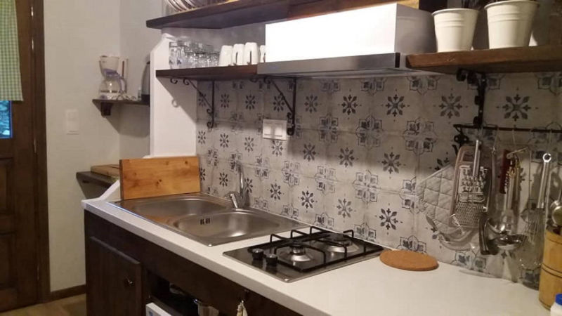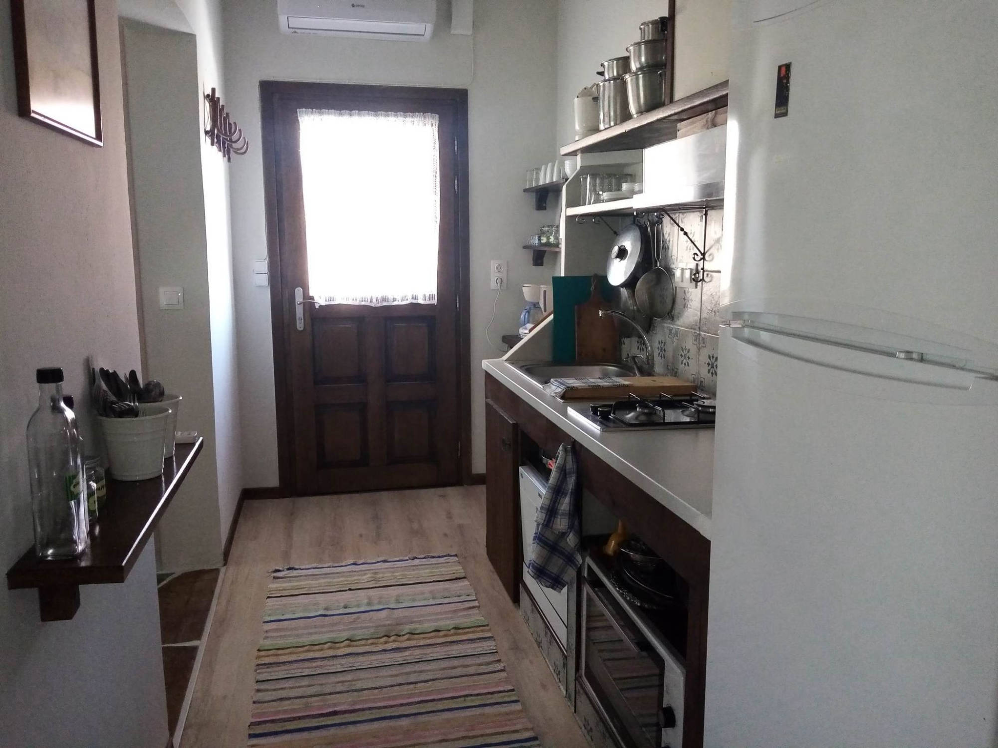Once into the house, you will be welcomed by a vintage living room and a custom handmade kitchen. The kitchen is fully equipped with a refrigerator, gas cooker, oven, microwave oven, coffee maker, toaster, dishwasher and all necessary tableware & glassware. You will also find two spacious double rooms and two bathrooms, one of which has a washing machine inside. Furthermore,...... barbeque and outdoor balcony for relaxing or dining....